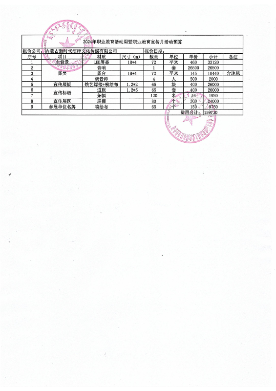 关于2024年职业教育活动周暨职业教育宣传月活动布展物料采购结果公示